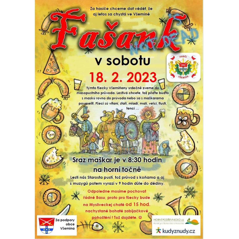 Za hasiče chceme dat vědět, že aj letos sa chystá ve Všemině Fašank! Sraz maškar je 18. 2., v 8:30 hod. na horní točně. (vk)