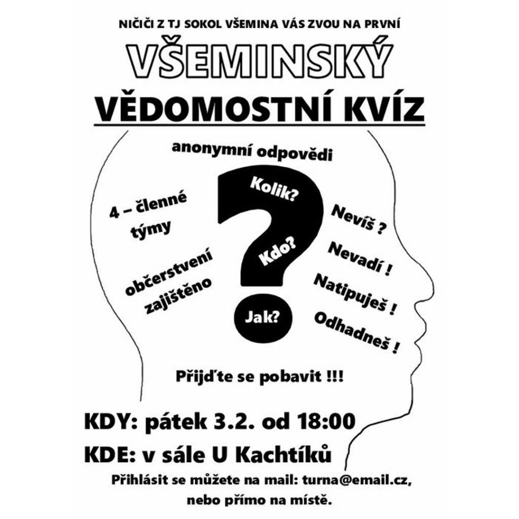TJ Sokol Všemina Vás zve na vědomostní kvíz. Přijďte se pobavit!